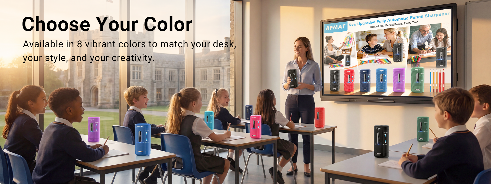 Shop AFMAT PSC5Just insert the pencil—automatic grip, sharpen, and eject. Safe, clean, and effortless for students, artists, and teachers.