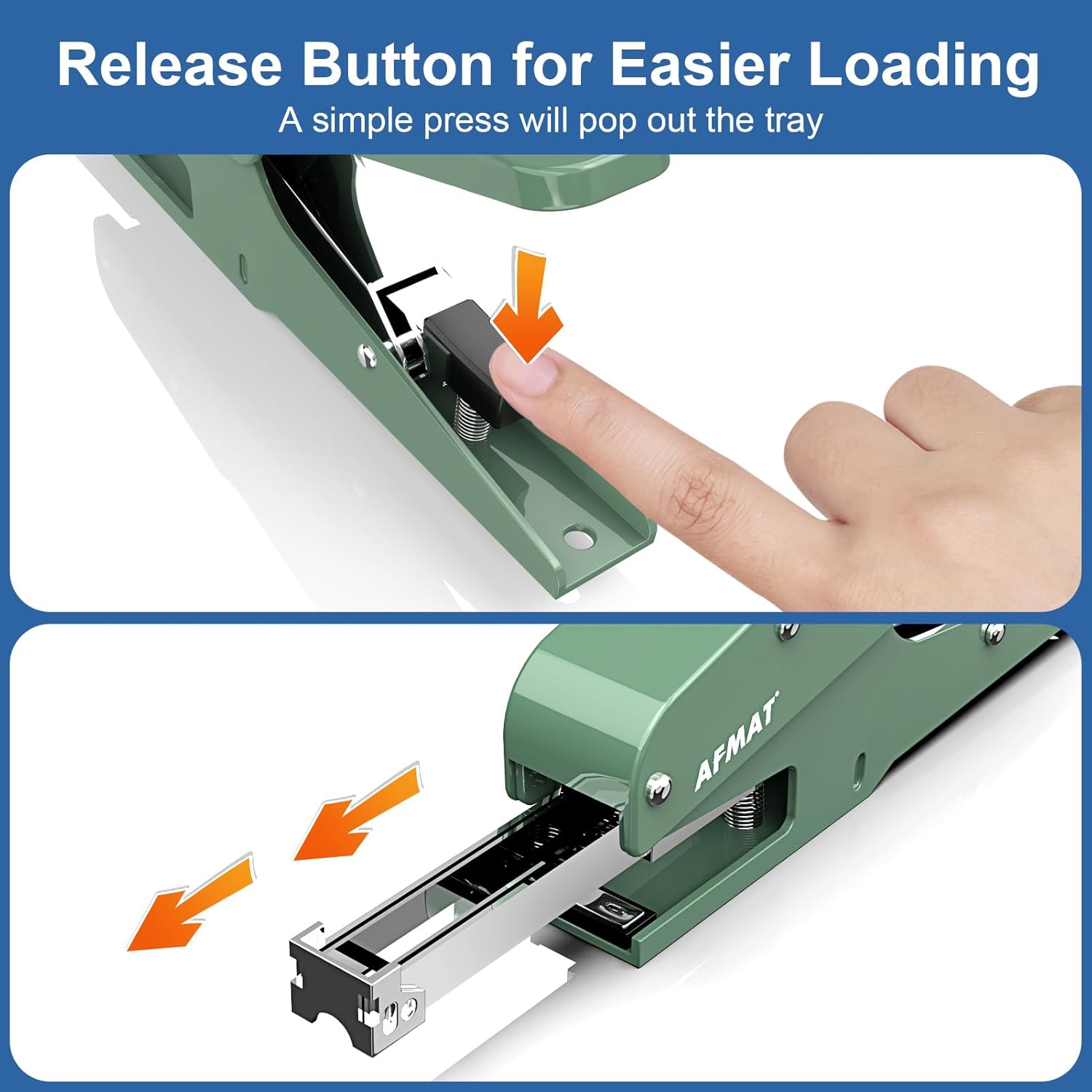 AFMAT Müheloser Zangenhefter, 50-Blatt-Heftzange aus Metall, mit 1000 5/16-Zoll-Heftklammern, Modell: ES14 (Grün)