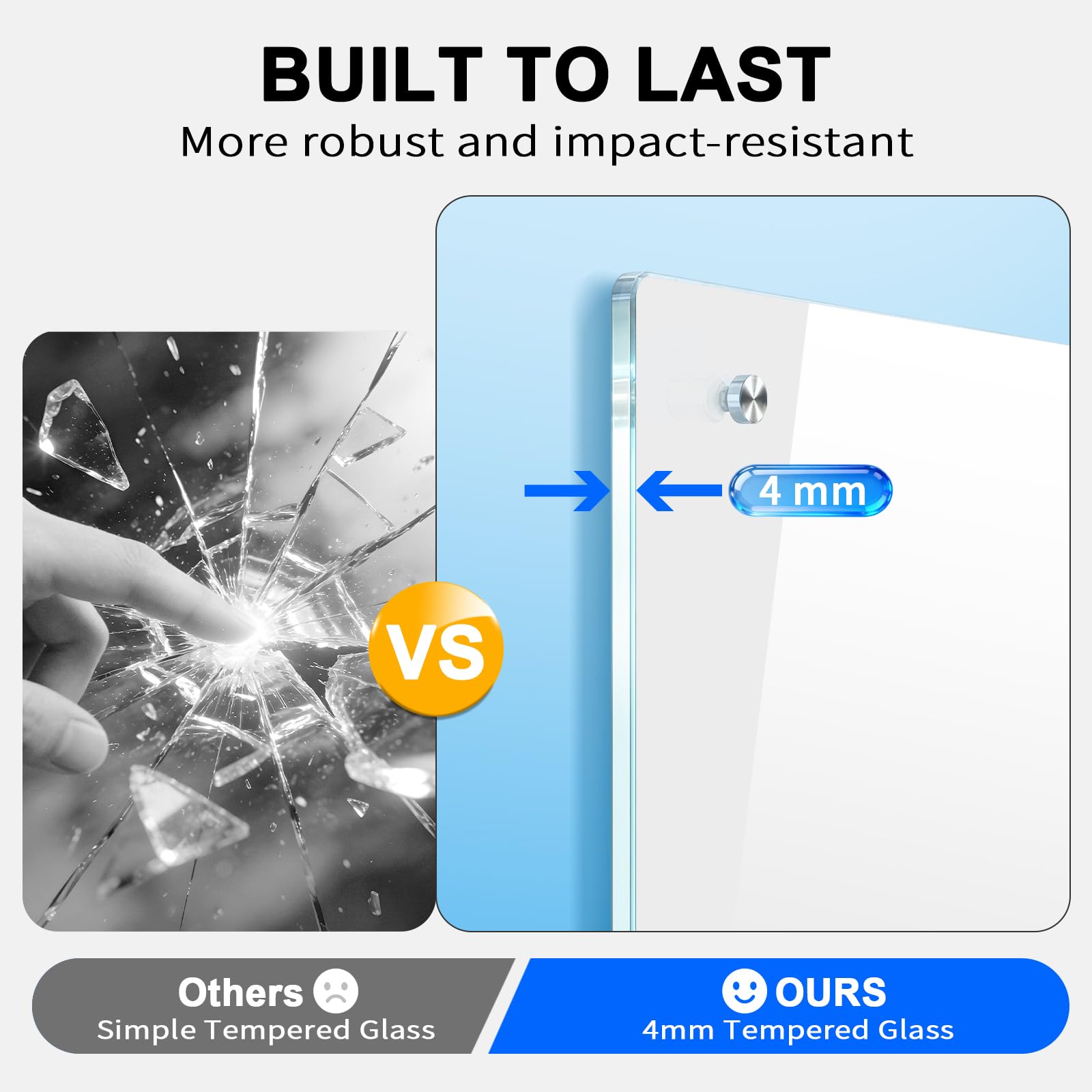 - Premium 4mm Tempered Glass Dry Erase Board: This glass whiteboard features a 4mm high-strength tempered glass, which is resists scratches and dents for extended longevity. Double-layer roll coating creating an ultra-smooth, perfectly uniform surface, ensures effortless writing, easy erasing, and a consistently clean whiteboard. No more stubborn ghosting on this white board dry erase even after repeated writing and erasing!