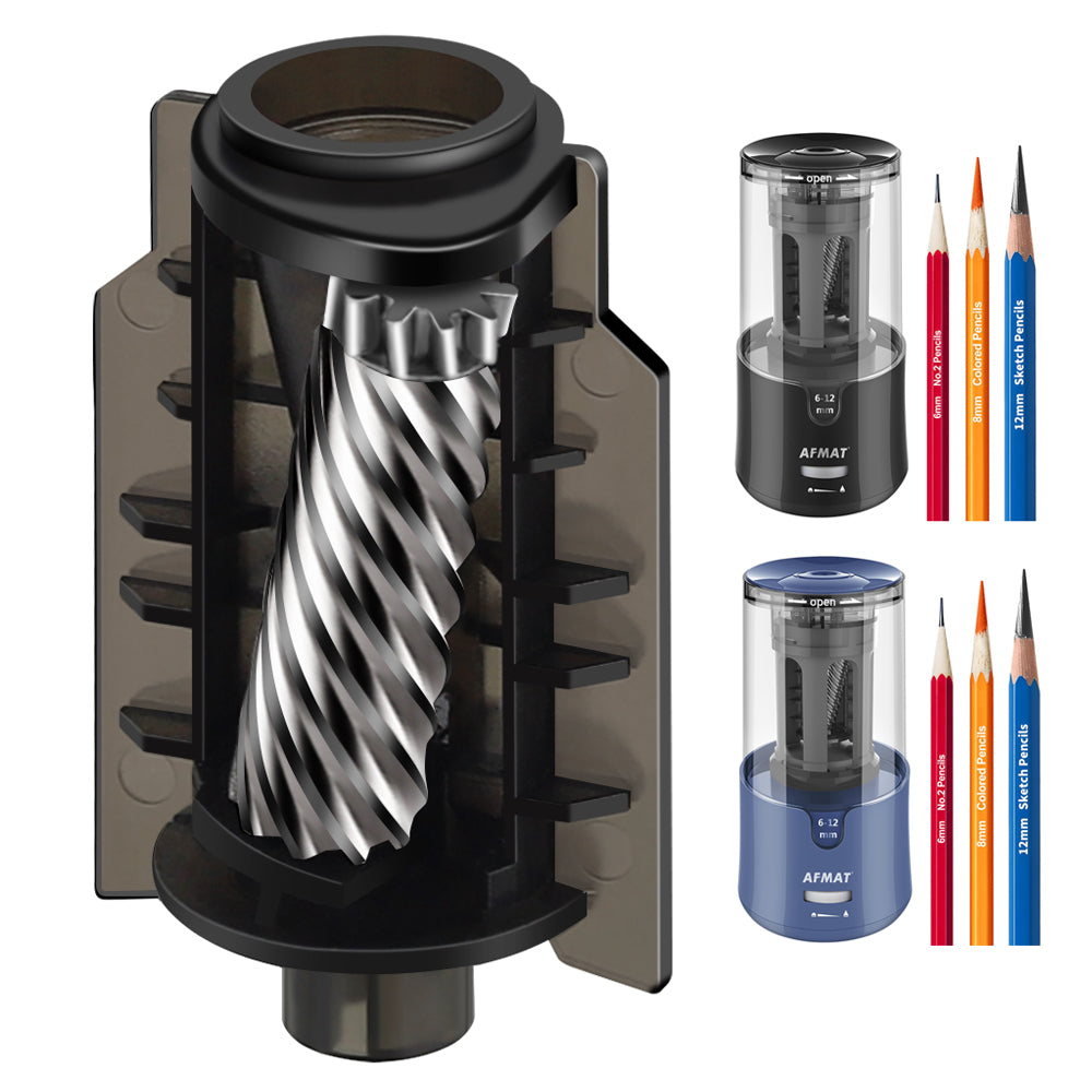 AFMAT Newly Upgraded PSC2 6.5-12mm Super Durable Fully Automatic Pencil Sharpener,3X Longer Cutter Life,for Jumbo & Colored Pencils 6.5-12mm,Auto in & Out, 5 Sharpness Modes, Rechargeable Heavy Duty Sharpeners for Classroom Home Office,PSC2BL