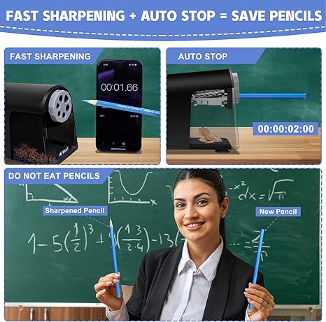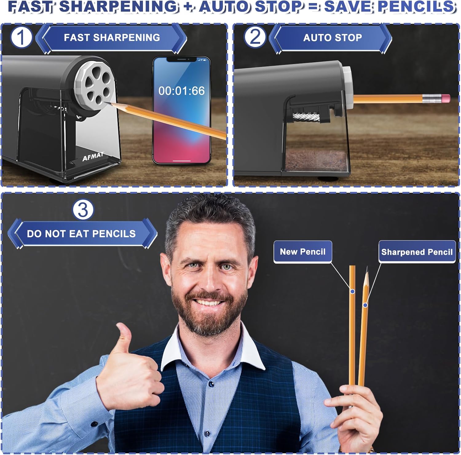 - This classroom pencil sharpener is incredibly fast in sharpening speed, 3s for a new pencil and 2s for a used pencil. Teachers must have this breakage-free electric pencil sharpener.