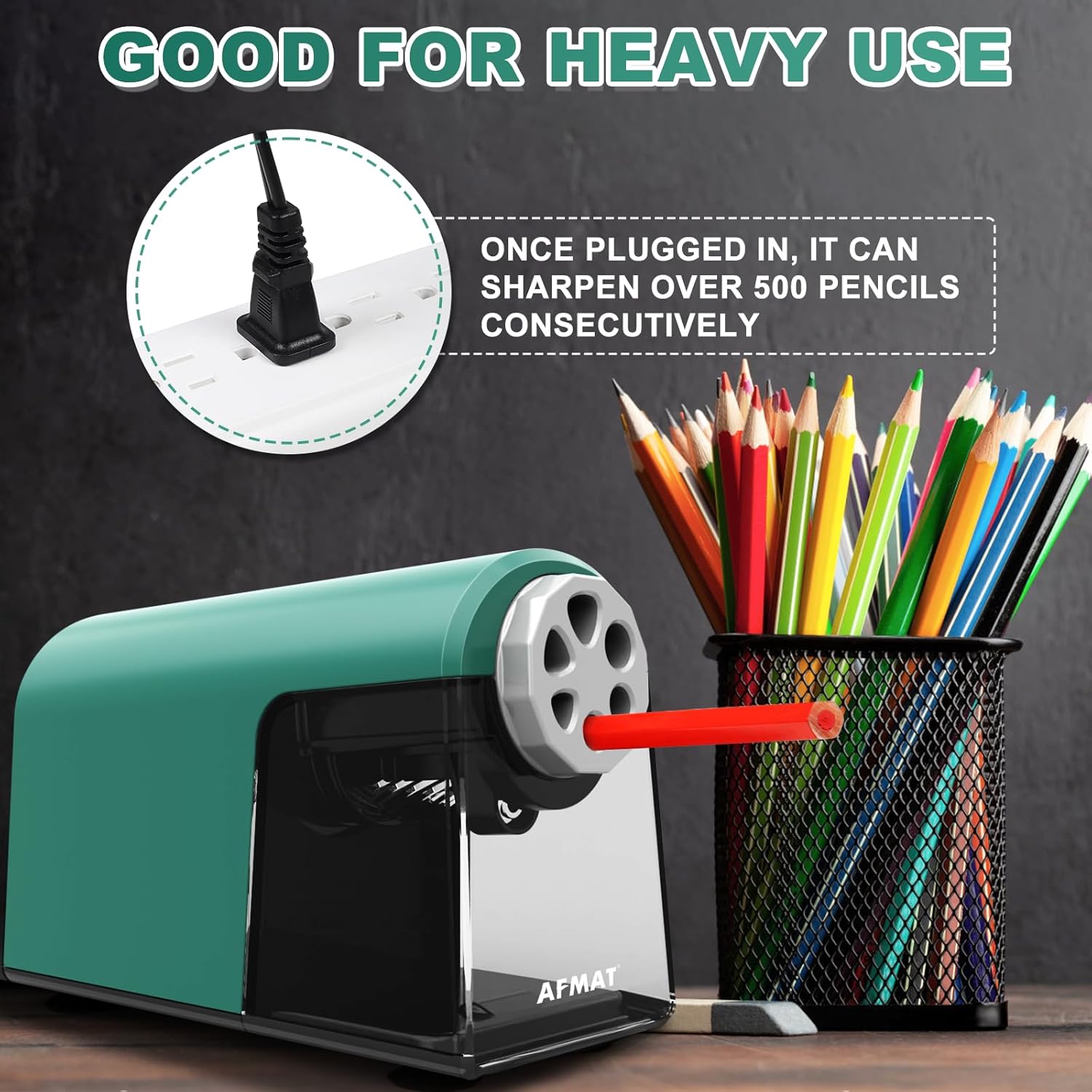 AFMAT PSX2 Heavy Duty Electric Pencil Sharpener for Classroom, 6 Holes, Electric Pencil Sharpeners for Home,Black