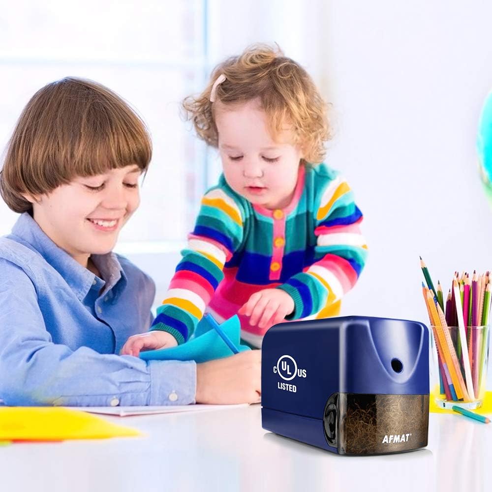 - UL Listed Electric Pencil Sharpener: Our classroom pencil sharpener is UL listed(Model No:S230) and has no issues after sharpening 100 pencils at a time. It is faster, more durable and powerful than any other helical blade sharpeners due to its bigger and stronger helical blade and motor. Ideal for kids, teachers, students, engineers, children, artists, and anyone who needs a long-lasting heavy duty pencil sharpener!