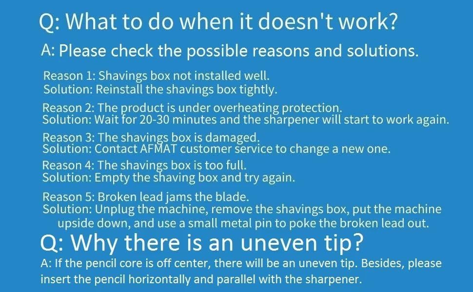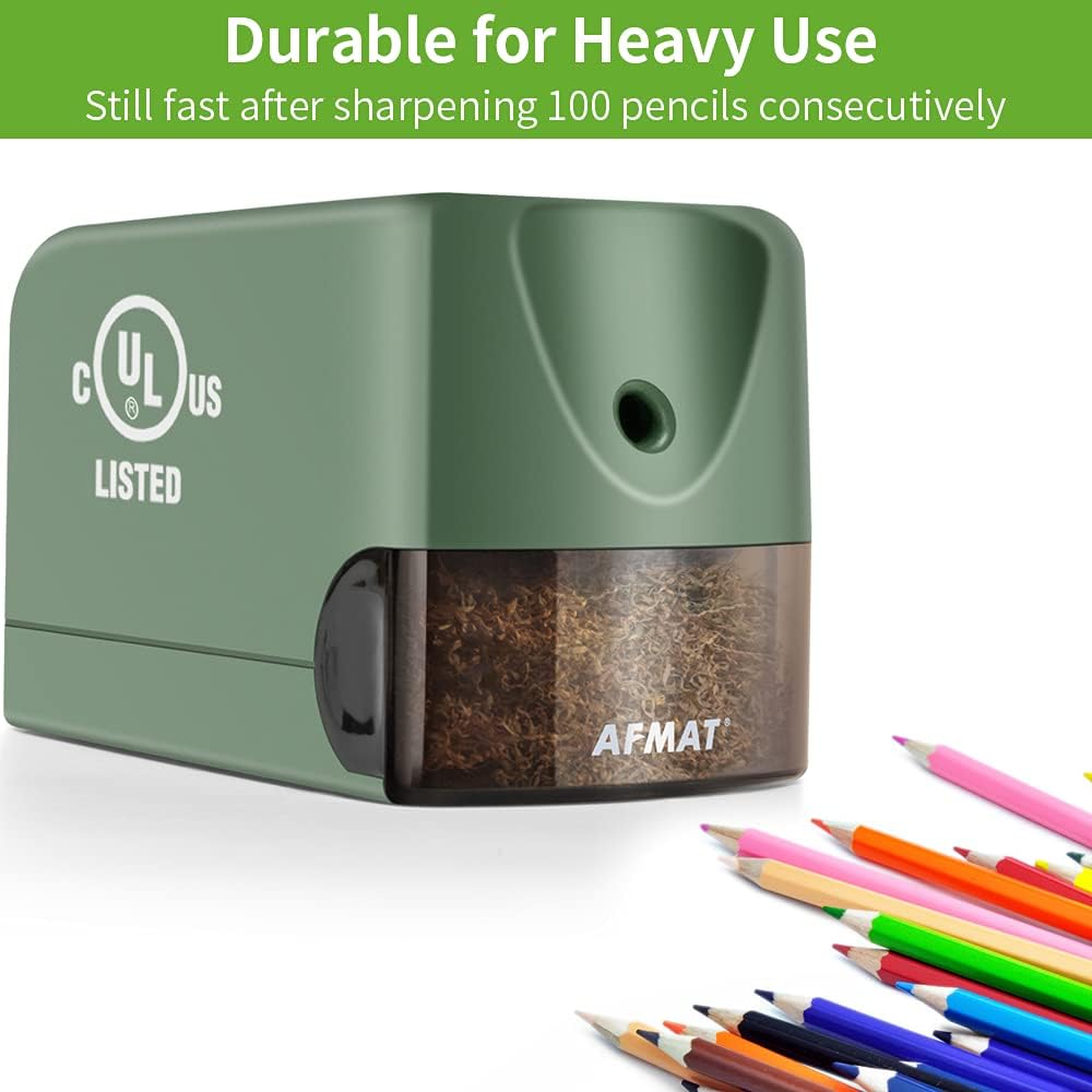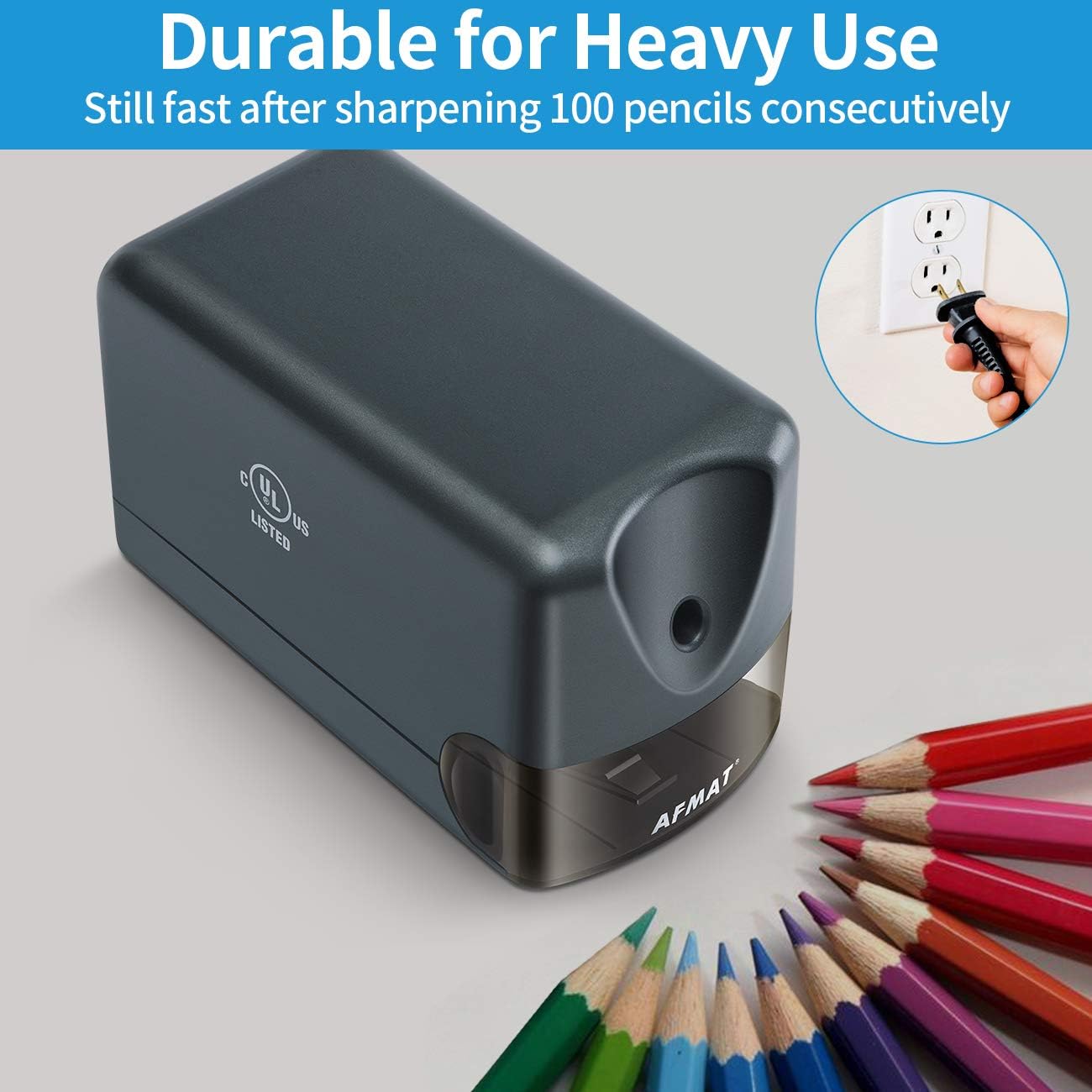 - Corded Electric Pencil Sharpener: This AFMAT electric pencil sharpener comes with a 120V US wall plug, which is easy to use. Just plug in and insert the pencil horizontally. Take out the pencil when the motor sound changes.