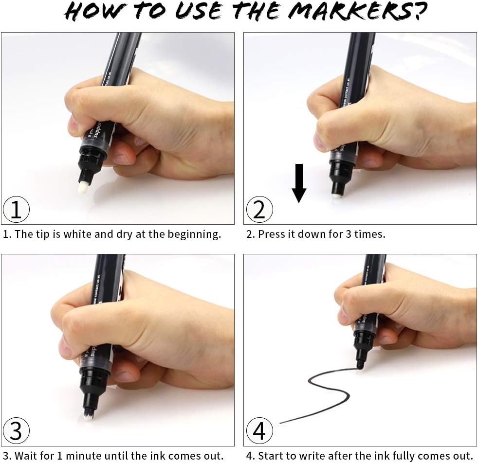 - Comment utiliser les marqueurs AFMAT : À la réception des marqueurs, appuyez trois fois sur la pointe blanche et attendez une minute que l'encre sorte. Ils ne sèchent pas. Si vos enfants préfèrent ne pas utiliser le capuchon, ajoutez nos marqueurs à votre panier. Nos marqueurs pour tableau blanc ne sèchent pas même après une longue période d'utilisation. Il suffit de pomper à nouveau sur la pointe.