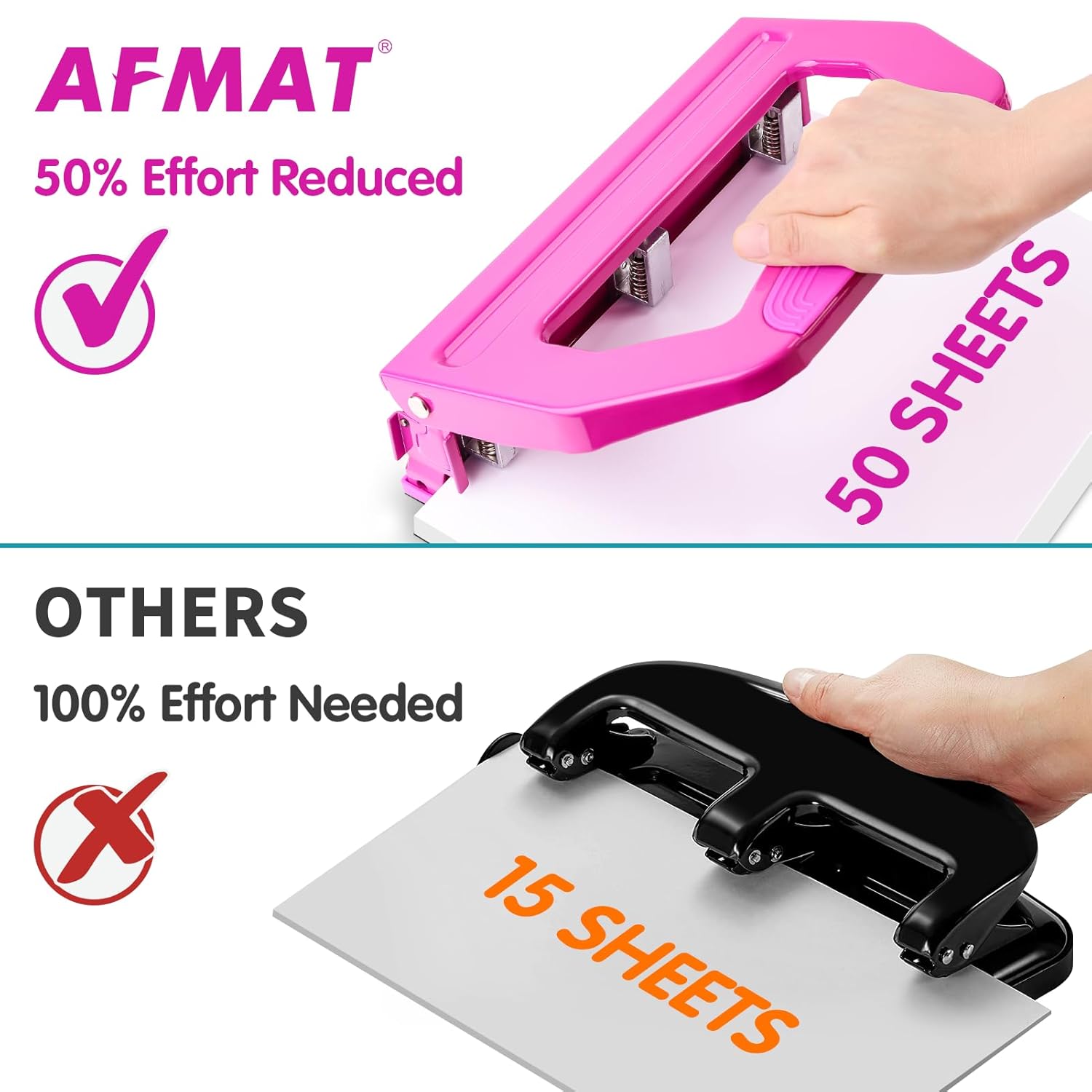 Perforatrice AFMAT robuste 50 feuilles, 2 et 3 trous (4,79 lb)