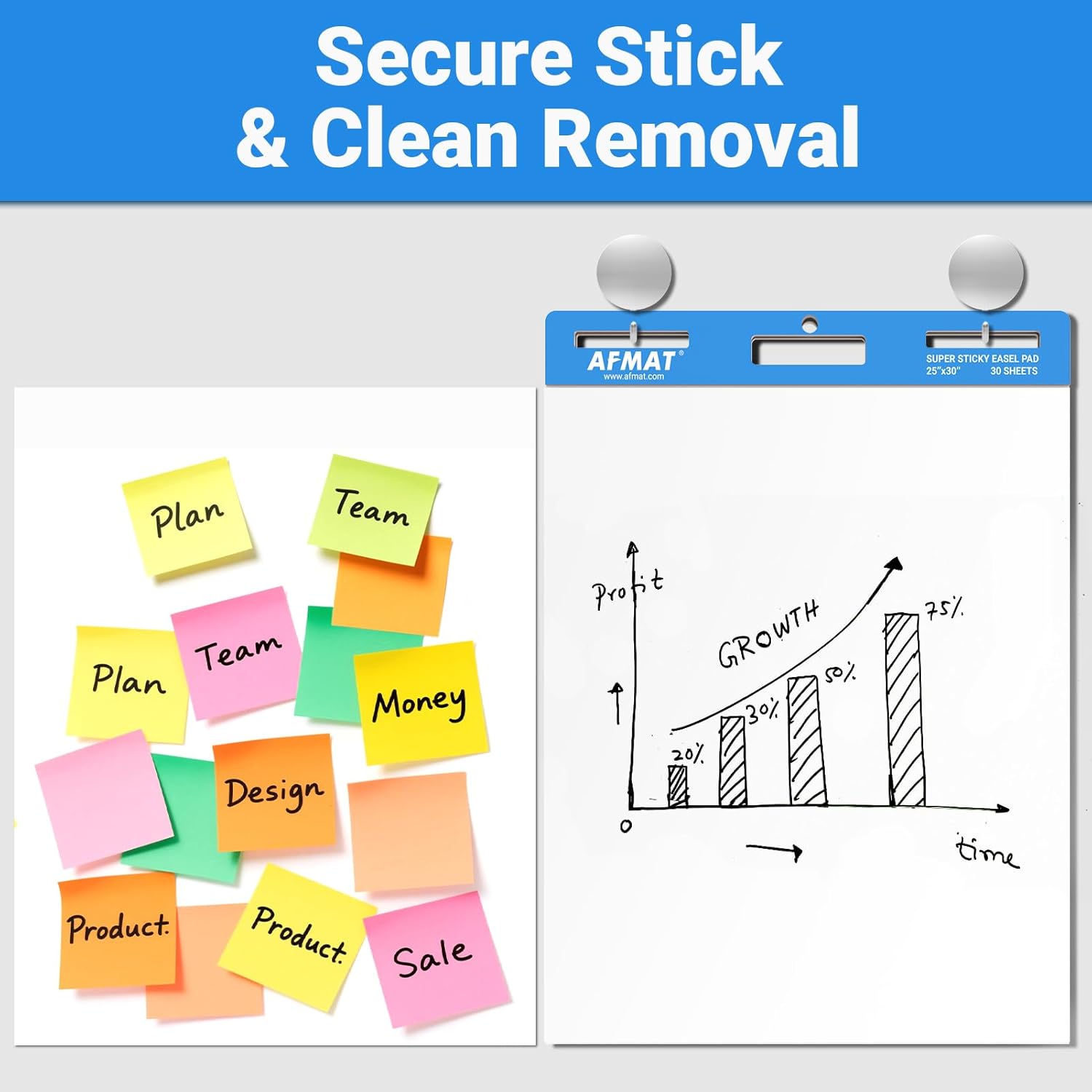 Blocs de papier adhésifs AFMAT, 63,5 x 76,2 cm, pour tableau de conférence, pour enseignants, super adhésifs et résistants aux bavures, pour bureau, salle de classe, tableau blanc, mur, fenêtres, 30 feuilles/bloc, 5 blocs