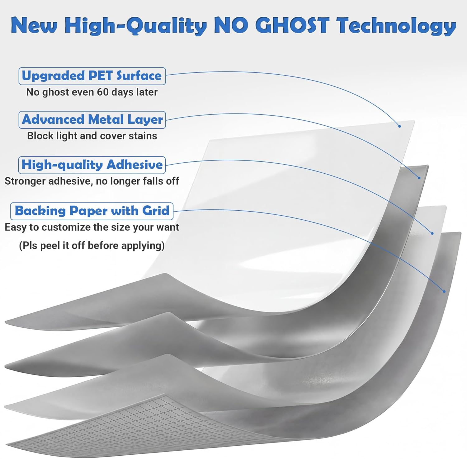 | Material | Silicone paper, Metal film, PET(No Ghost After 60 Days) |