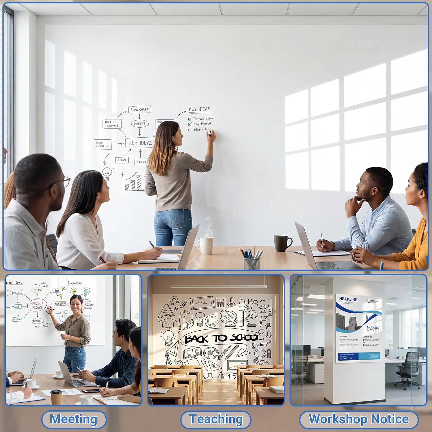 - ✅Multi-functional Dry Erase Paper: Use it as a traditional white board or a projector curtain wall, it can be put on an office desk to start a brainstorm. Moreover, it can be cut into small whiteboard sheets to stick on students desks.