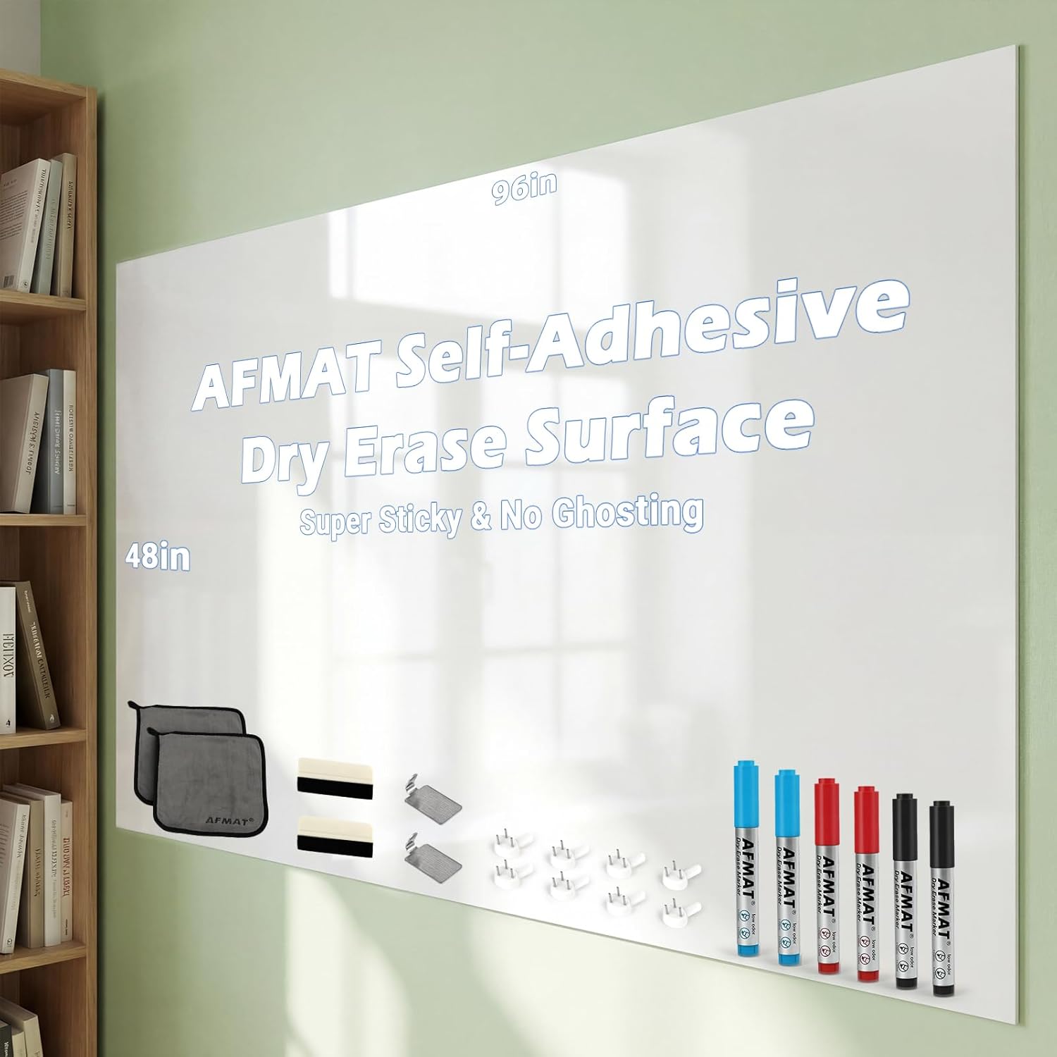 AFMAT Whiteboard for Wall, 8 x 4 ft White Board Sticker, 96 x 48 inches Dry Erase Wallpaper, Peel and Stick Whiteboard Contact Paper Roll for Wall/Table/Doors/Glass/Fridge, 6 Dry Erase Markers, WS48D