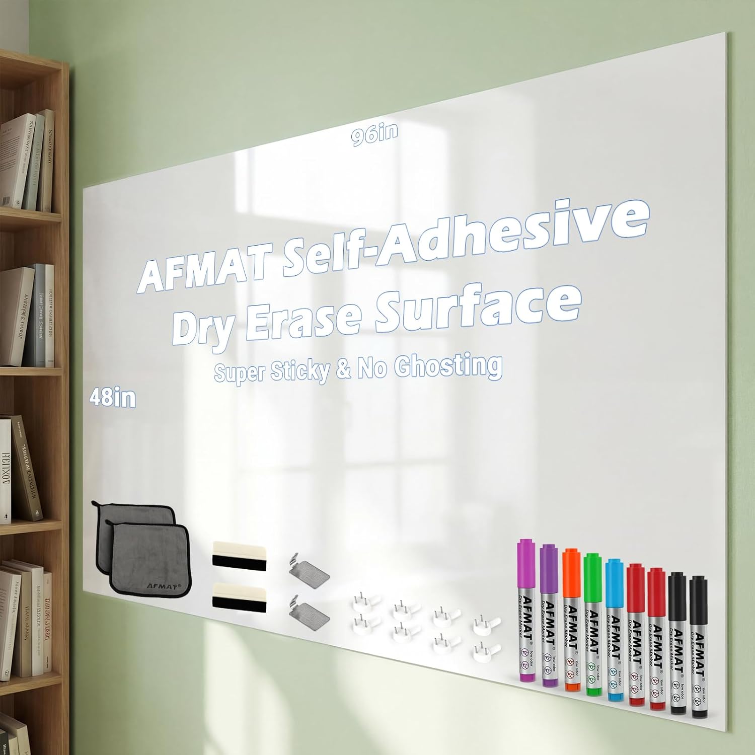 Dry Erase Whiteboard Paper, Large White Board Stickers for Wall, 6x4ft Dry Erase Paper Roll with Adhesive Backing, Perfect Replacement for White Board, No Ghost After 60 Days, 9 Much Better Markers, WS48E