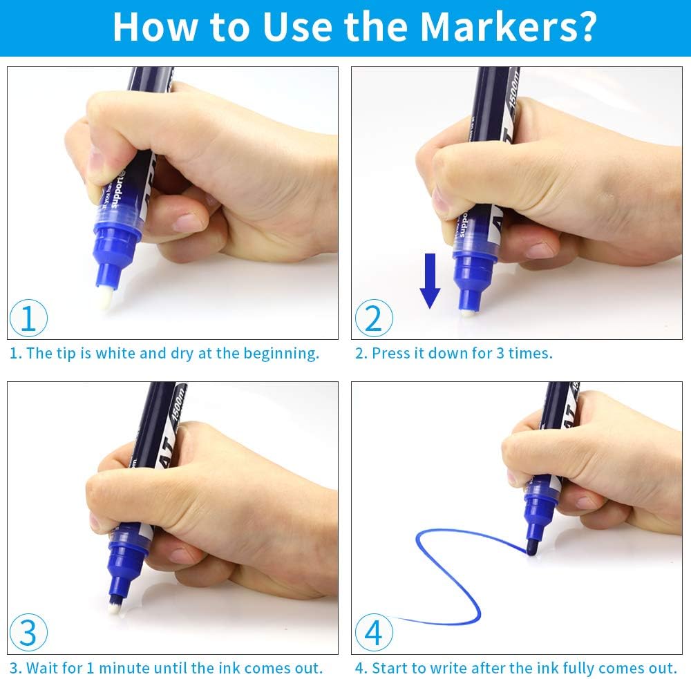 6 marqueurs pour tableau blanc (distance d'écriture de 1 500 m par marqueur)