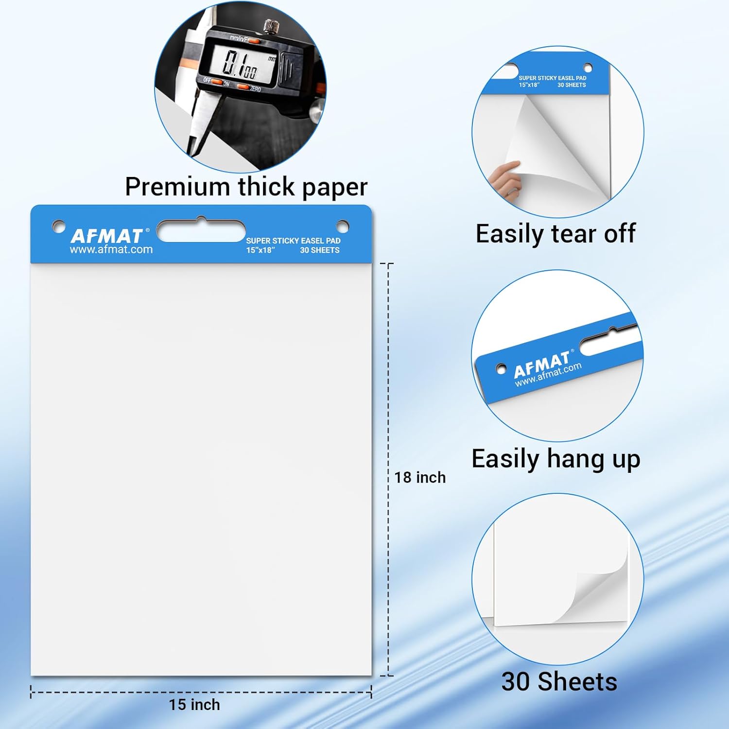 AFMAT Sticky Mini Easel Pads, 15 in x 18 in Flip Chart Paper for Teachers, Super Sticky & Bleed-Resistant, Self-Stick Easel Paper for Office/Classroom/Whiteboard/Wall/Windows, 30 Sheets/Pad, 5 Pads,Model:AFEP15BL