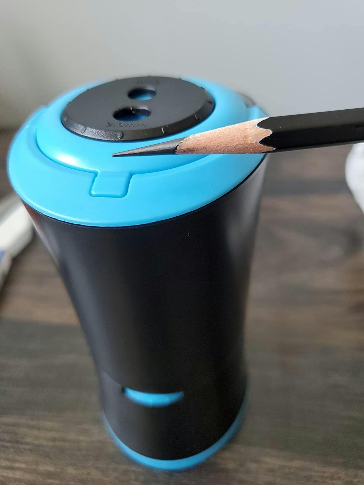 - Please note that the pencil sharpener doesn't work when it is plugged into an outlet. This is to protect the battery and make it last longer.