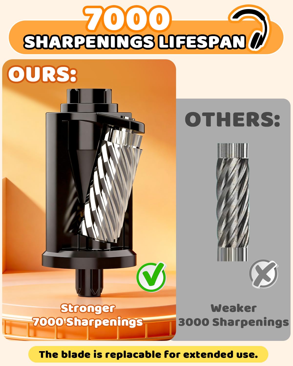 - DURABLE PENCIL SHARPENER FOR CLASSROOM: The industrial grade helical blade of this pencil sharpener is engineered to be extremely tough for extended longevity up to 7000 sharpenings without wearing, delivers 2x longer lifespan than standard sharpeners. An ideal, economical electric pencil sharpener for heavy use in classroom full of students - Teachers must have. The blade is replaceable. ASIN for blade: B0G4TZX4F5