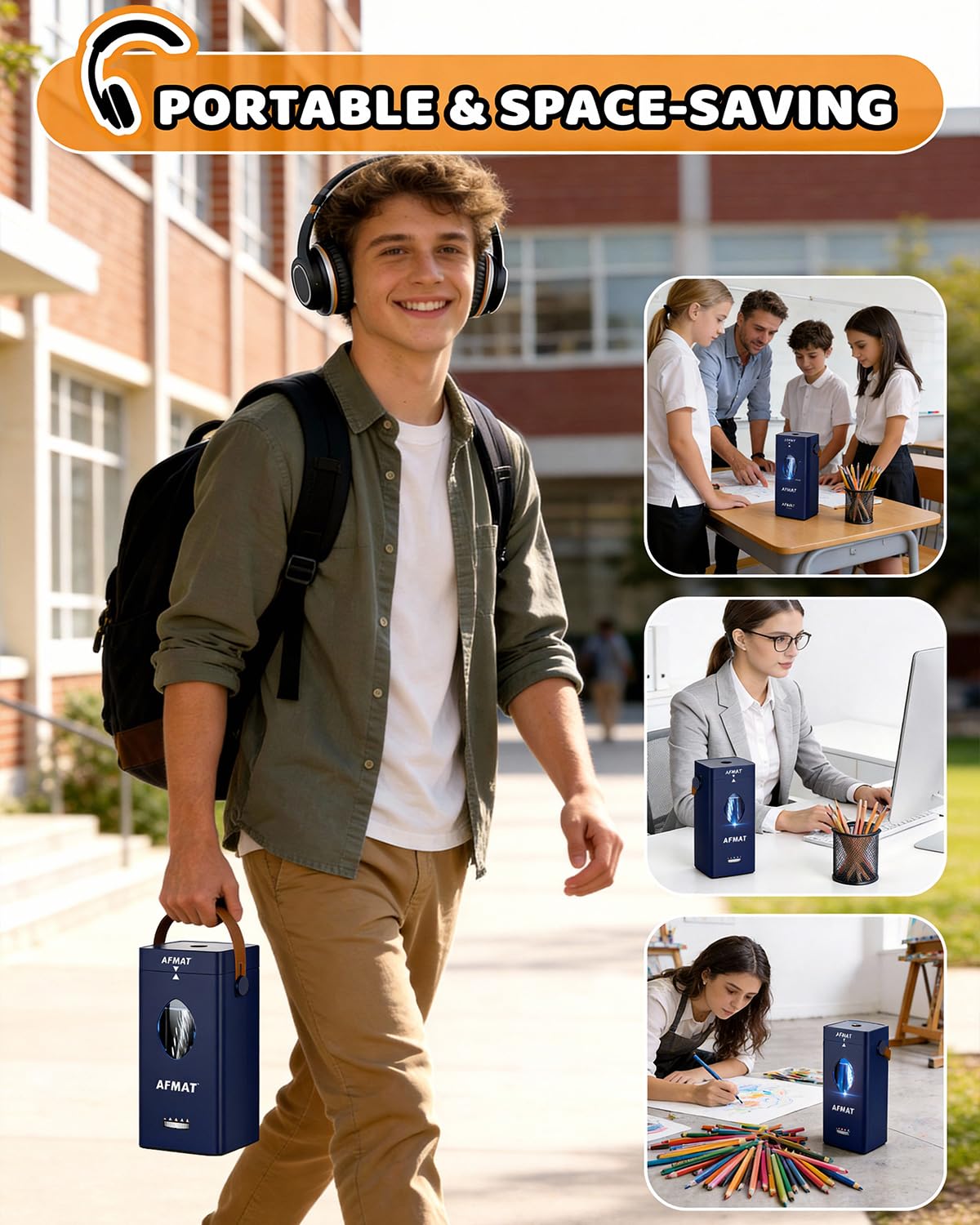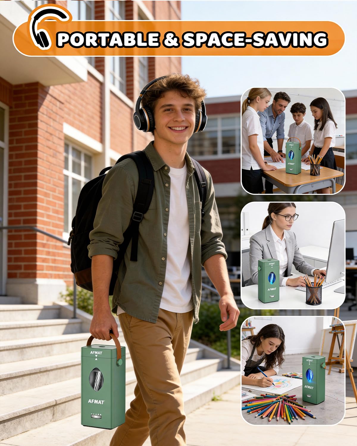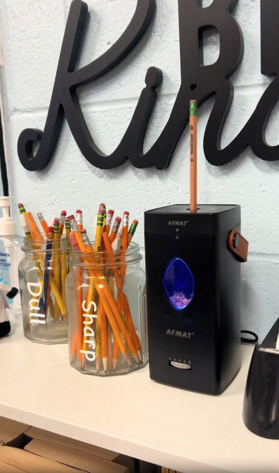 - TRIPLE SAFETY PROTECTION PENCIL SHARPENER: The AFMAT electric pencil sharpener prioritizes user safety at every turn, equipped with a comprehensive triple safety protection system: alignment-activated sharpening, intelligent overheat protection, and overload protection, providing all-around protection during operation. This high-safety electric pencil sharpener gives teachers peace of mind and reassures parents, making it the top choice as a pencil sharpener for classroom use.