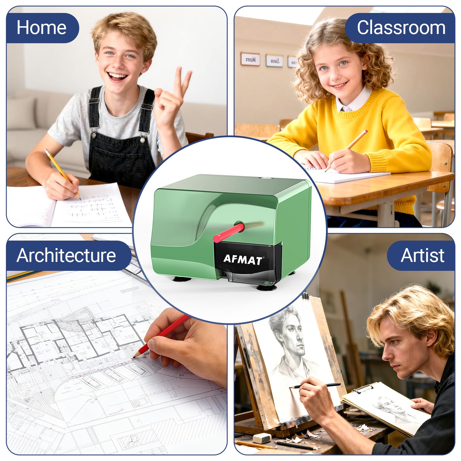 AFMAT PS108 Electric Pencil Sharpener, Heavy Duty Pencil Sharpener, Fast Sharpen in 3-5s, 3 Sharpness Setting, 10,000+ Sharpenings for Classroom, School, Home, Green