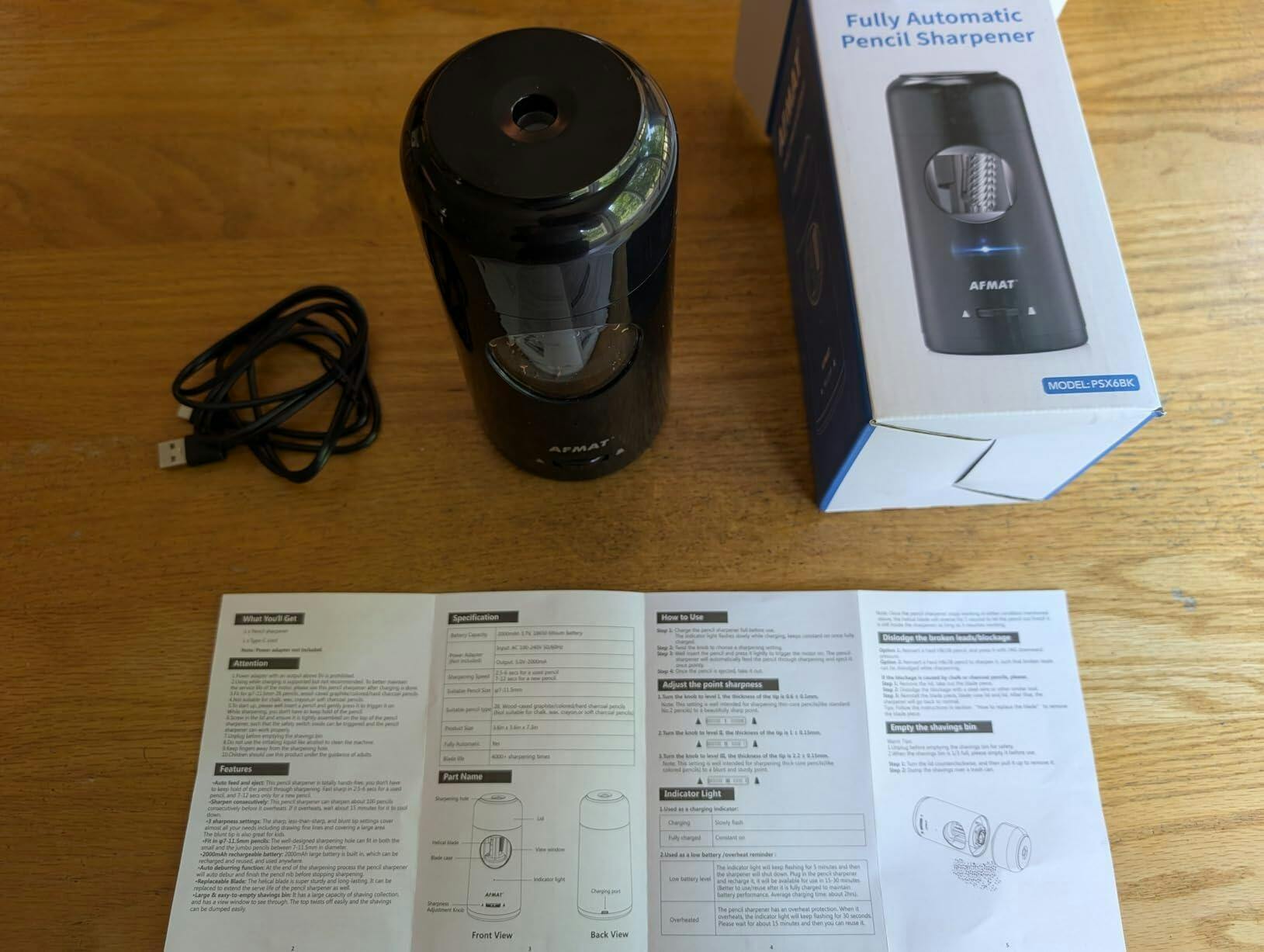 AFMAT PSX6 7-11.5mm Fully Automatic Rechargeable Pencil Sharpener for Jumbo & Colored Pencils (7-11.5mm),PSX6PR