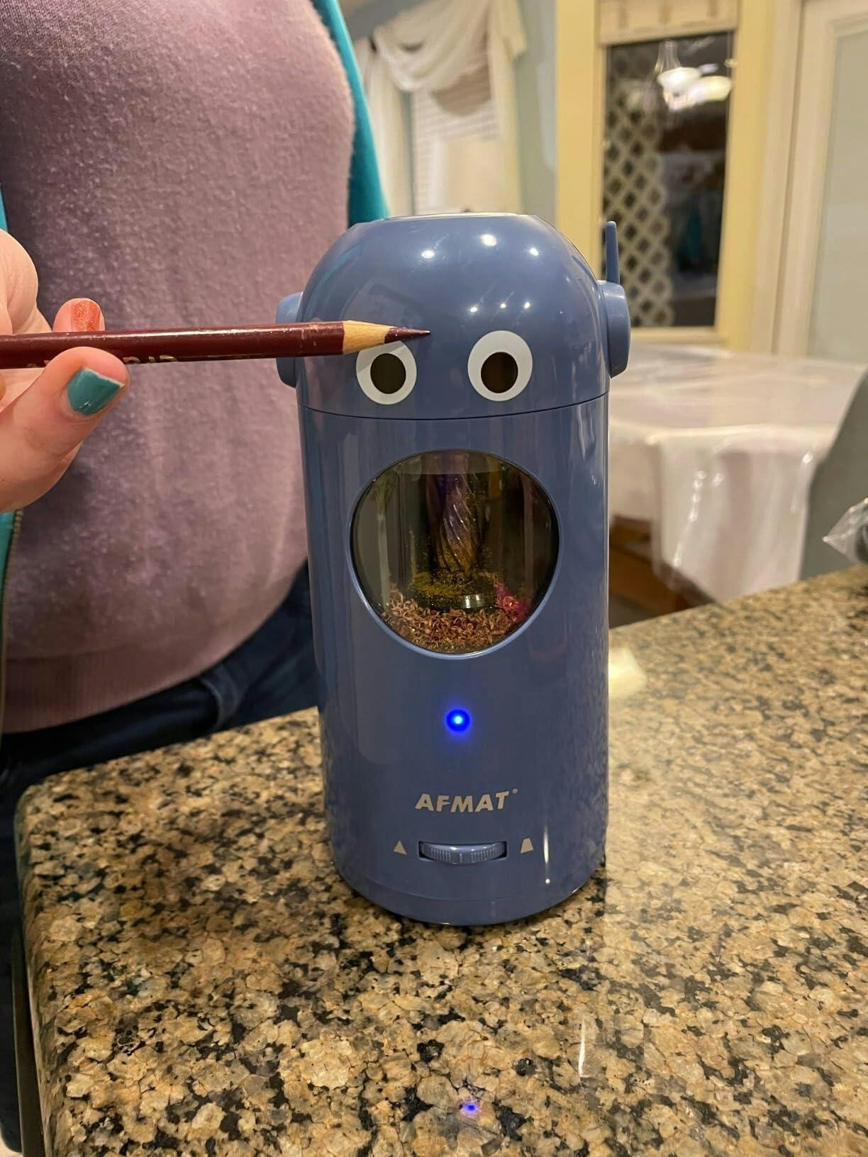 I bought the AFMAT PSX5RB Electric Pencil Sharpener for my daughter, and she loves it! It’s fully automatic, easy to use, and works great on her colored pencils without breaking them. Fun design, hands-free operation, and quick sharpening — perfect for home or school projects.