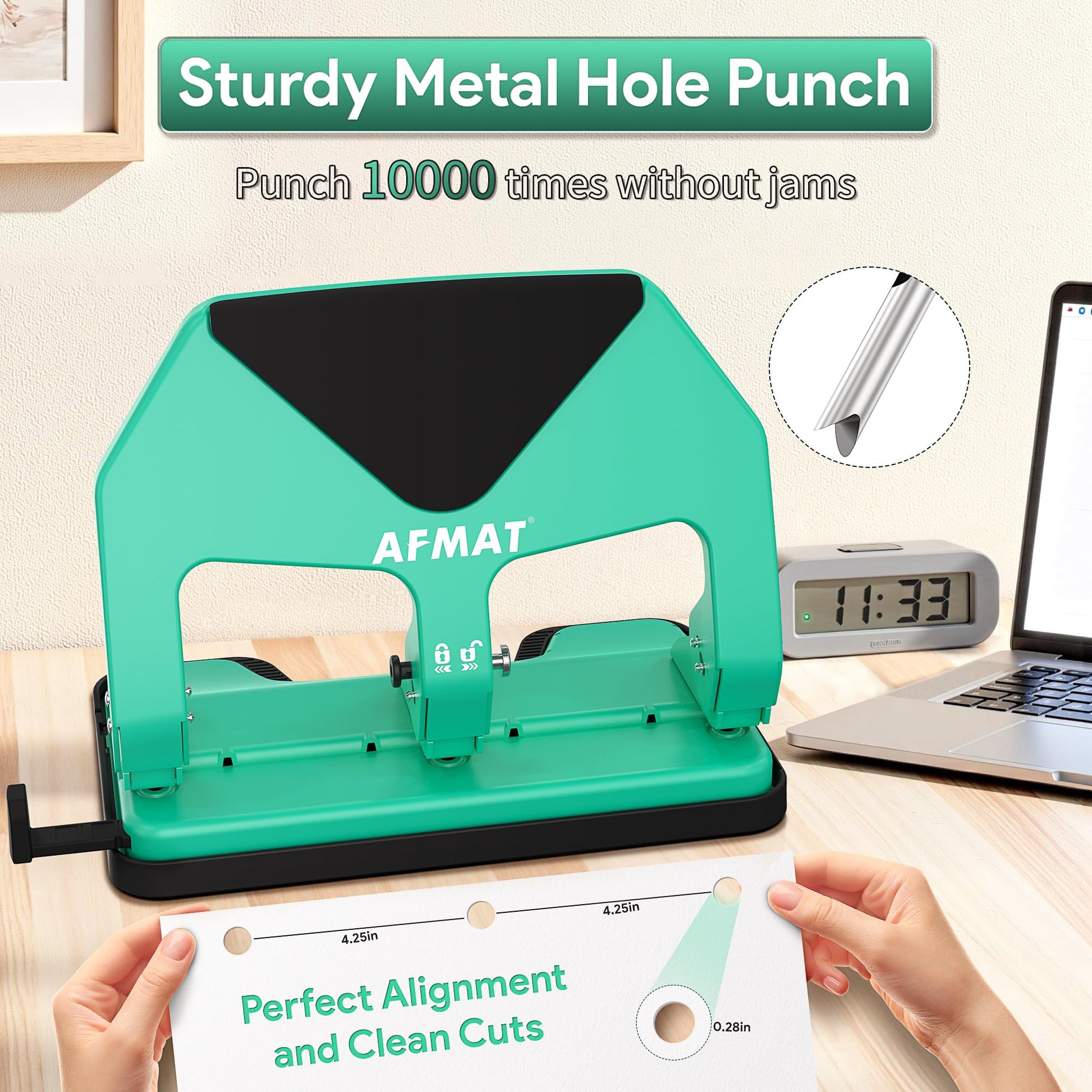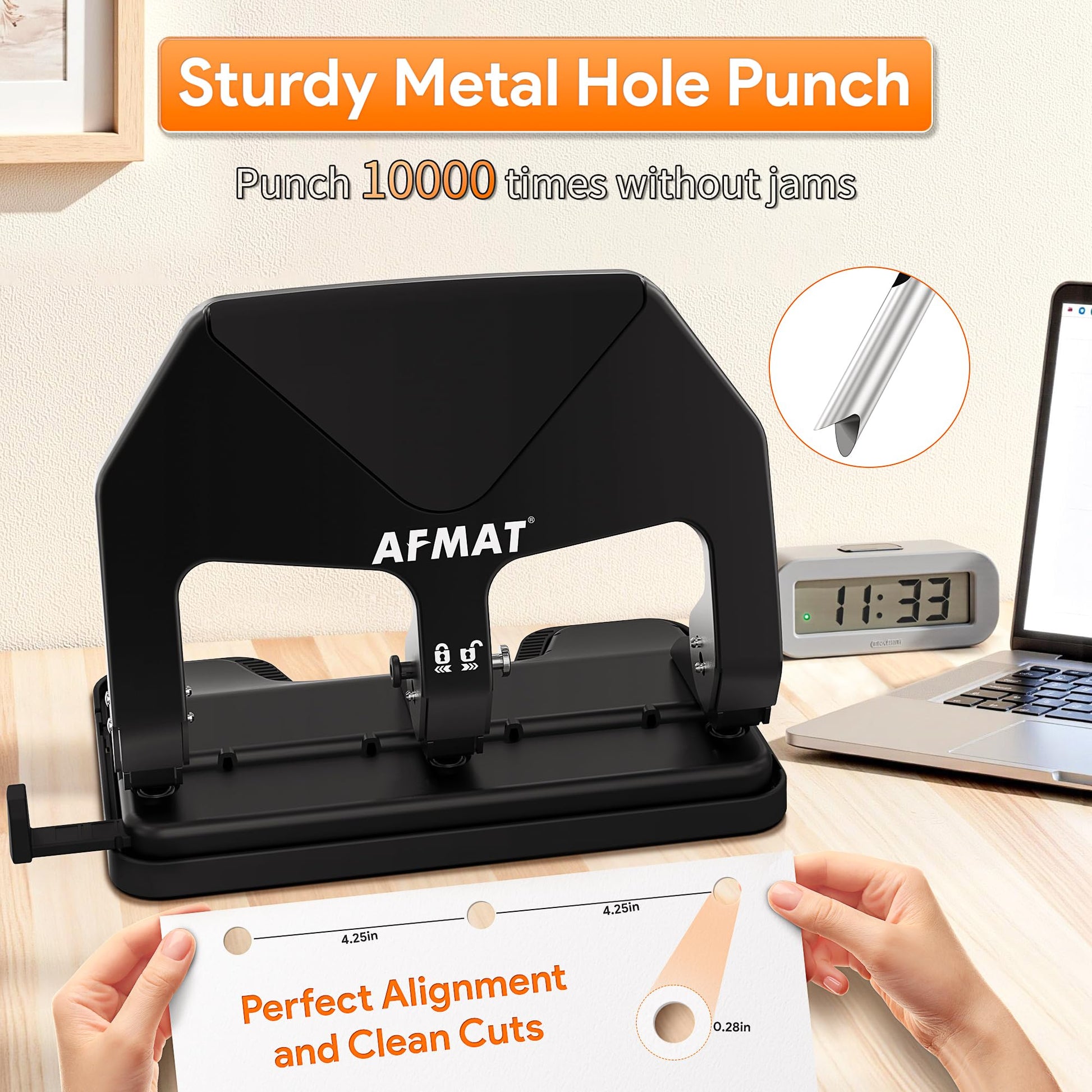 AFMAT HP20 Heavy Duty 3 Hole Punch, 60% Reduced Effort, 50-Sheet 3 Hole Puncher for Binder, 10,000+ Uses, Metal Three Hole Punch for Home Office School, w/Large Chip Tray, Paper Guide(Gray)