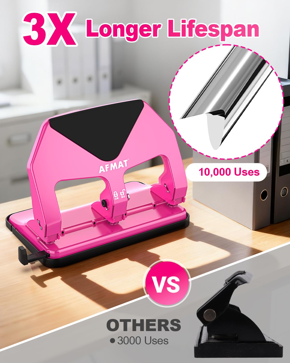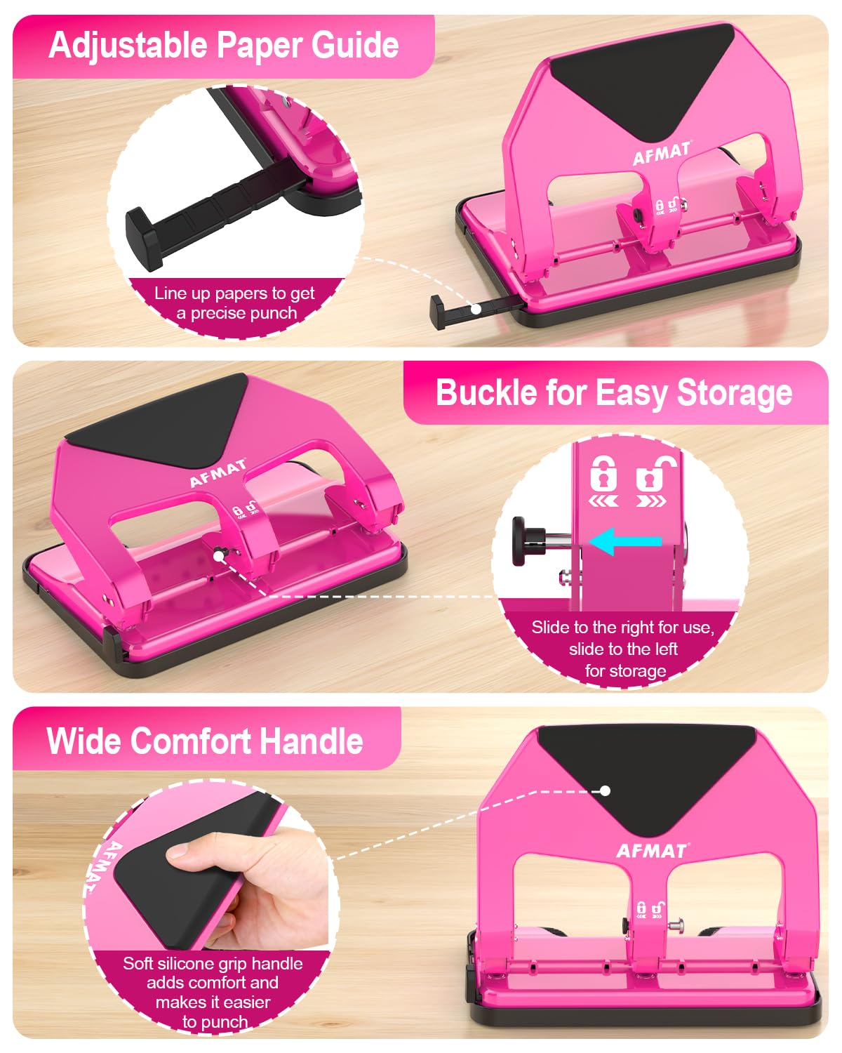 - 60% Easier Punching: This 3 hole puncher for binder, with the optimized labor-saving lever structure (the effort arm is much longer than the load arm), can get the job done with minimum hand pressure. The soft, wide silicone handles ensure a comfortable, non-slip grip, preventing hand strain and fatigue. Ideal for users with arthritis or for completing high-volume punching tasks.