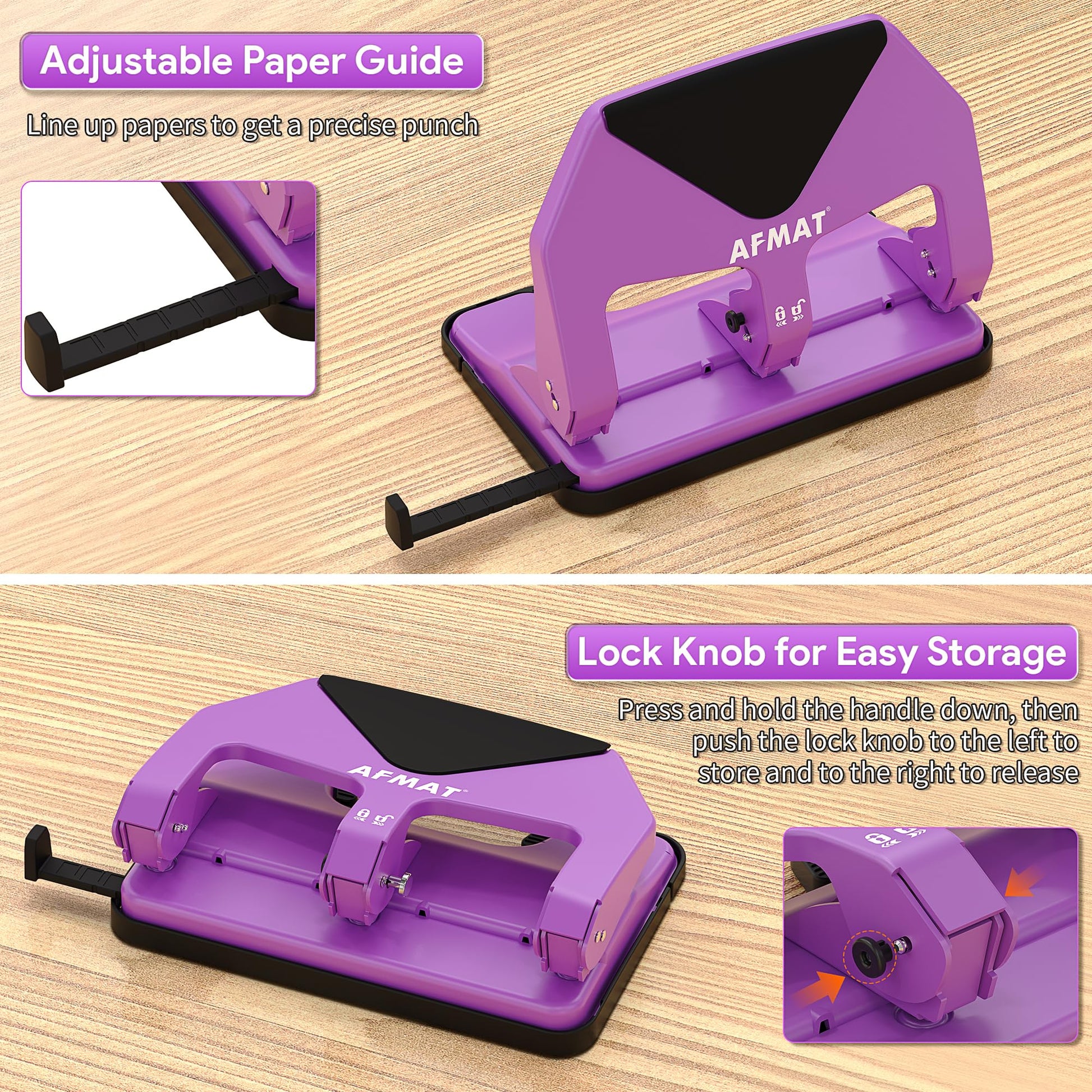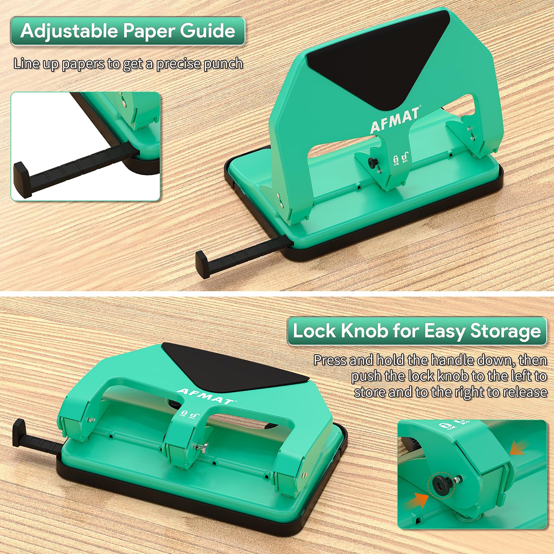 - Metal Paper Guide for Accurate Alignment: Equipped with a built-in adjustable paper guide, this paper puncher accommodates various paper sizes. When in use, you only need to set the guide, insert the paper, and punch, without manual position adjustment, ensuring that the punched holes are accurately aligned every time.