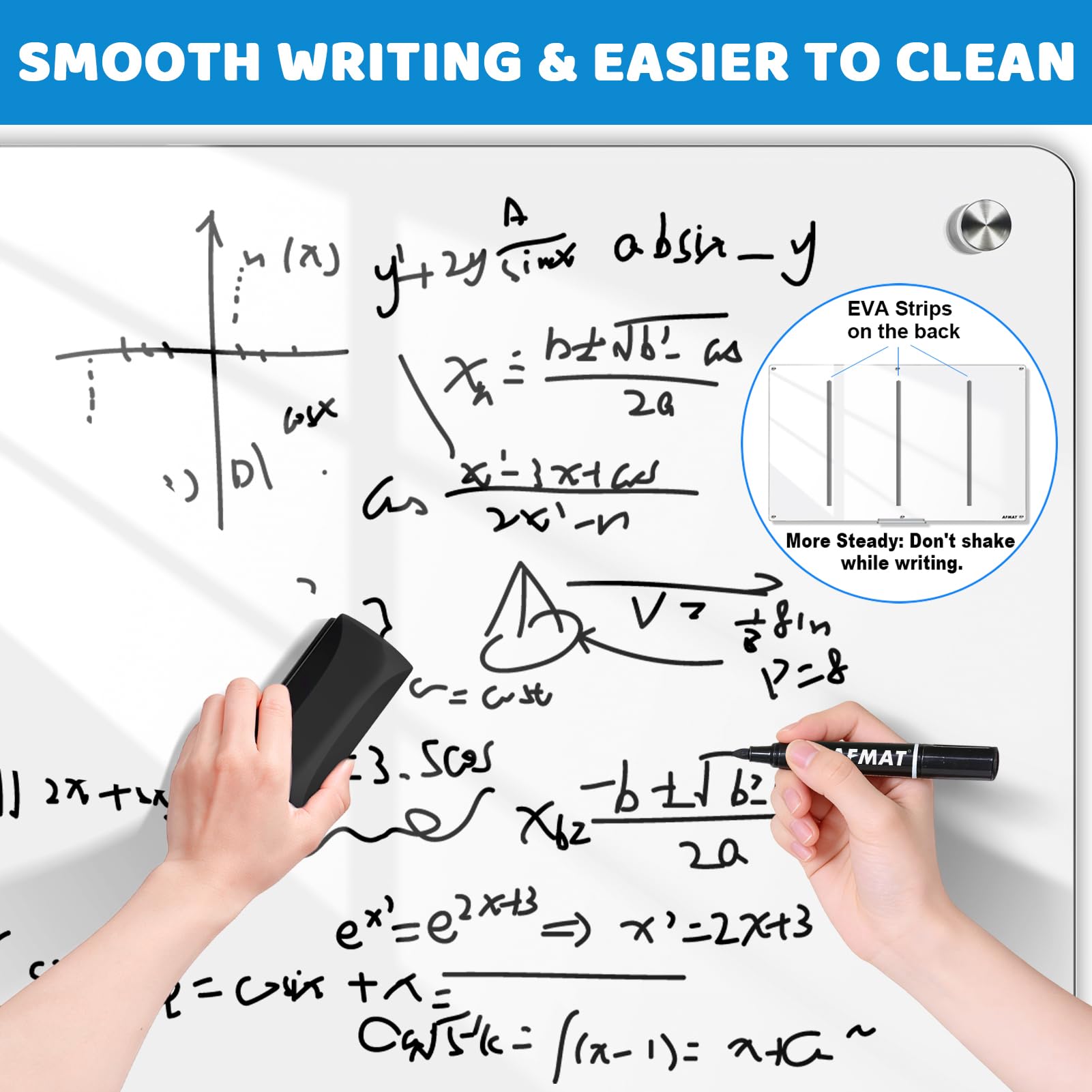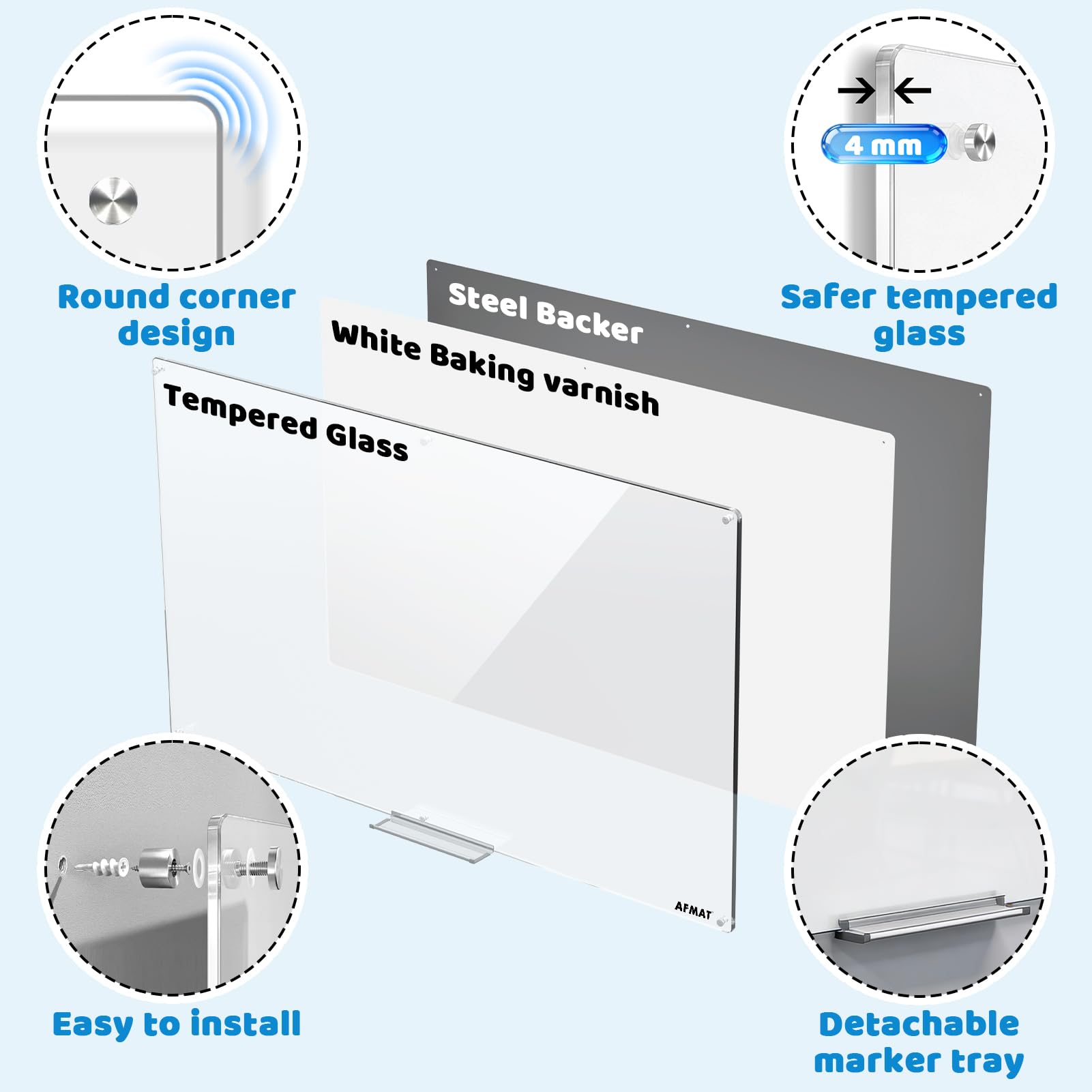 - 🏆PREMIUM 4MM TEMPERED GLASS DRY ERASE BOARD-Enjoy a wonderful writing experience with our 4mm high-strength tempered glass whiteboard, designed to resist scratches, dents, and everyday wear, ensuring years of reliable use. The double-layer coating creates a super smooth, flat writing surface that ensures effortless writing and easy erasing—no more stubborn ghosting left behind even after years of use!