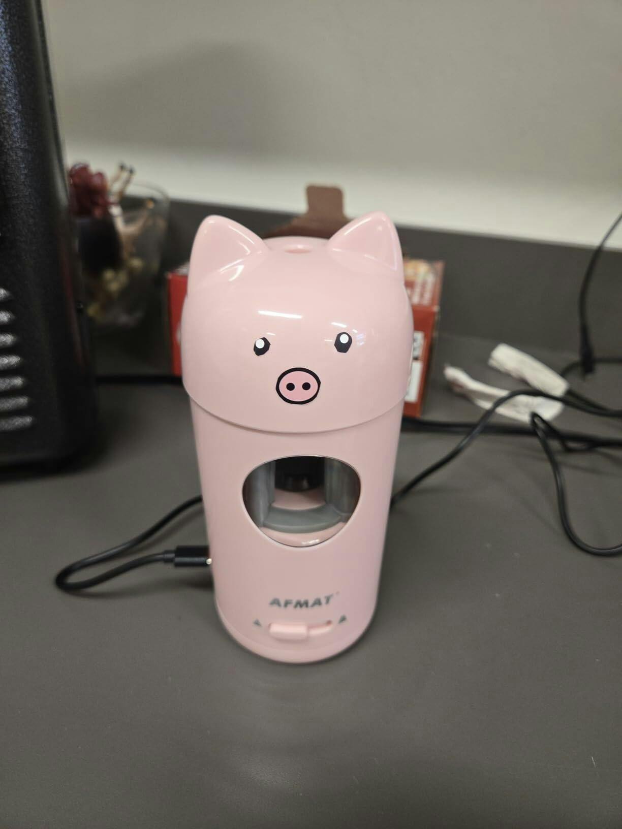 These are the best pencil sharpeners ever! We already have one and LOVE it. Did we need a second? Obviously, yes, because, well...cat ears. Is there anything cuter!? I really can't think of anything. But cuteness aside, it's a brilliant design and fits our needs perfectly. Top load is key, because you don't need to battle desk junk to sharpen your pencils. Rechargeable is key, because you don't need to have a designated desk outlet (already a hot commodity). Emptying is simple and clean - even my kiddos can do it without making a mess (shocking - I know!) I've turned into a real automatic sharpener fan - they are so easy to use: the sharpener sucks your pencil in, sharpens, and then spits out a perfectly sharpened pencil every time! My son was convinced the sharpener was taking an excessive amount of pencil with each sharpen, so we brought out the ruler to see. He was wrong - AFMAT Sharpener for the win!!
