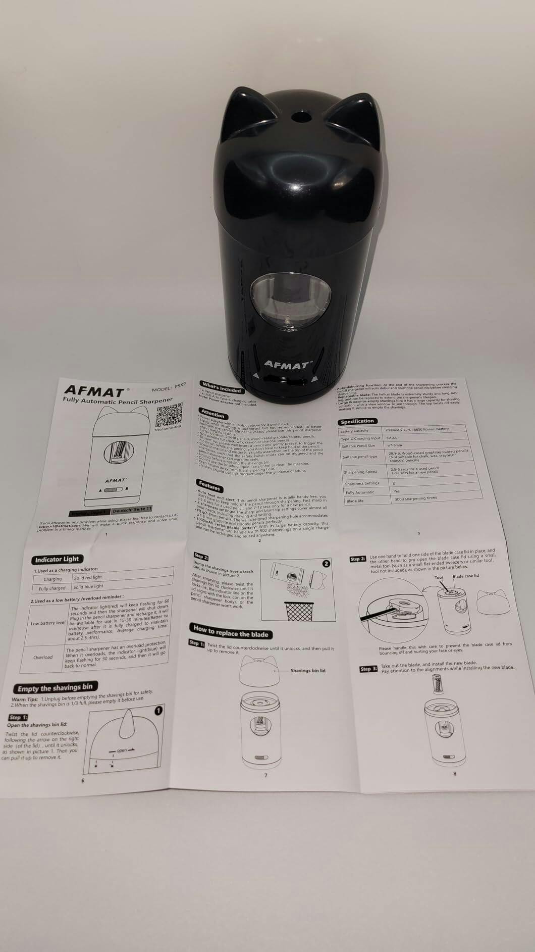 AFMAT PSX9 Cute Cat Fully Automatic Electric Pencil Sharpener for φ7-8mm No.2/Colored Pencils,PSX9BL