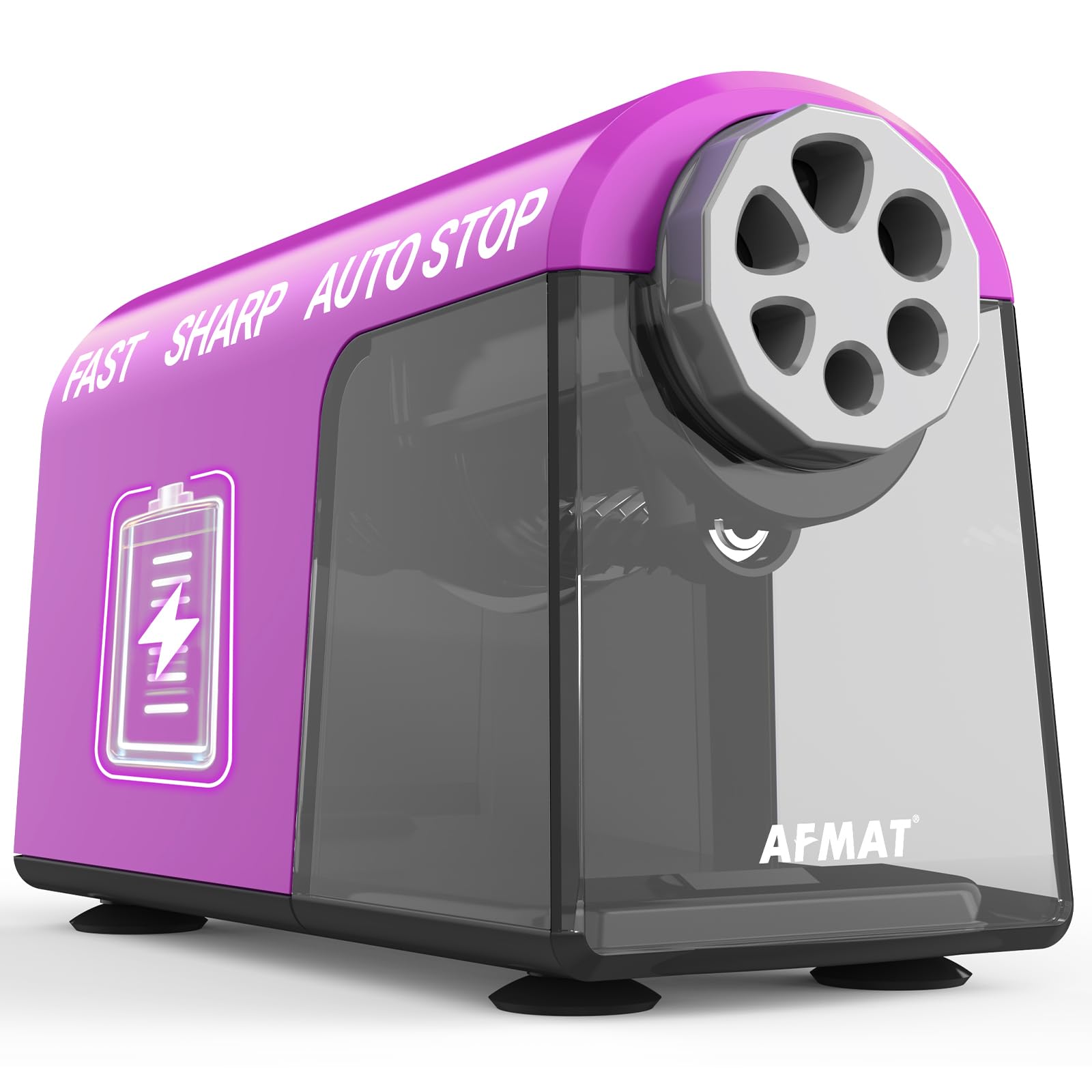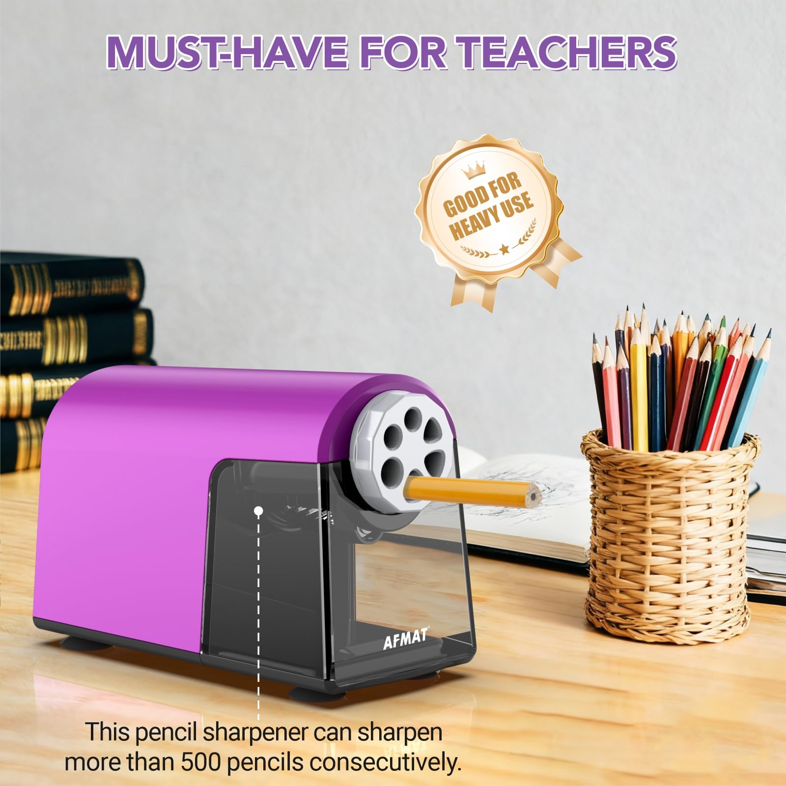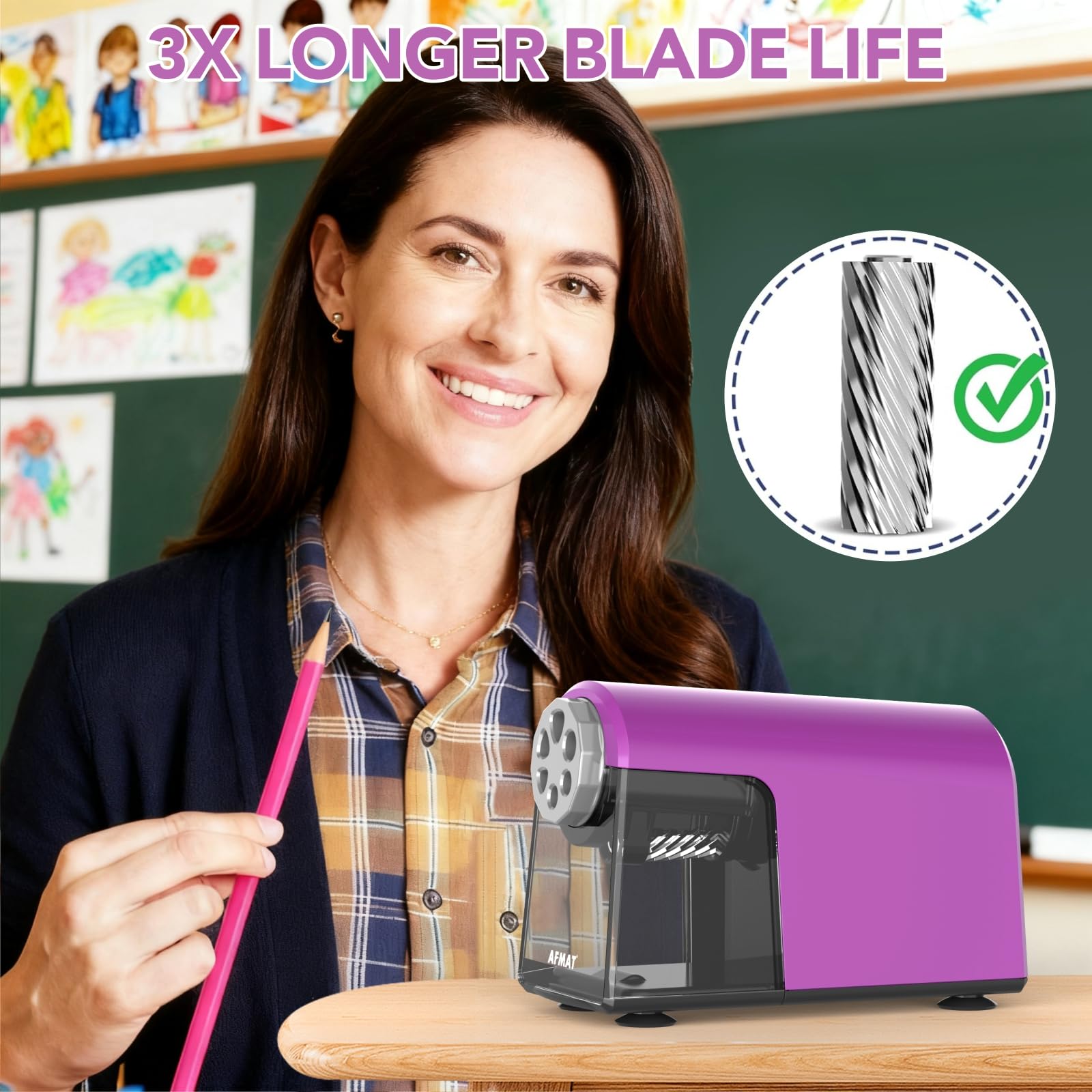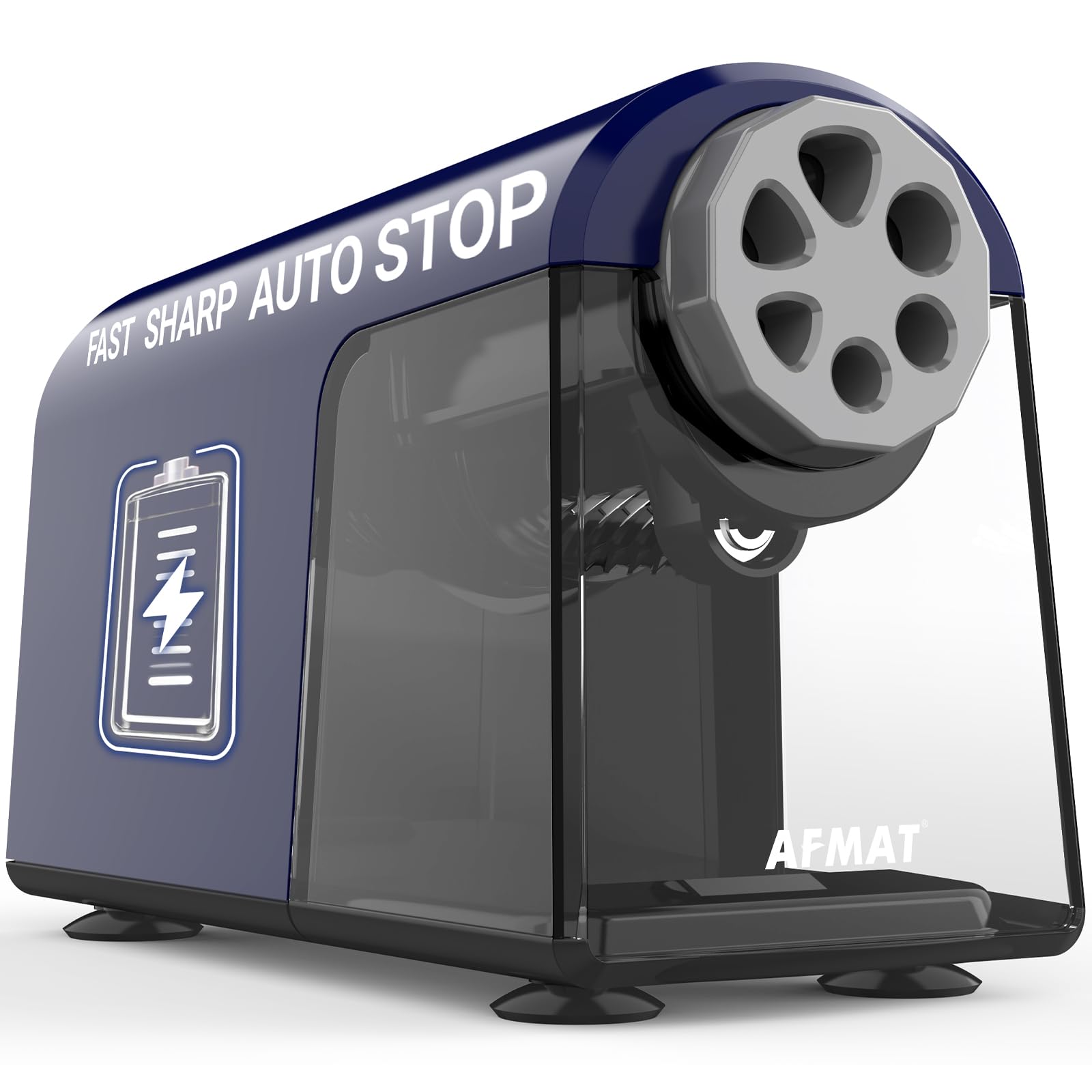 - 【Classroom Pencil Sharpener: Fast Sharpen in 3S & SAVE PENCILS】AFMAT classroom pencil sharpener sharpens pencil incredibly fast(Less than 4s for new and 2s for used) and to a fine point w/o. breaking the tips, which makes it a teacher’s dream sharpener for its speed, efficiency, and breakage-free feature. It will auto stop once pointy keeps every pencil from being over sharpened and shave wood off as little as possible so it doesn’t wear down the pencil like most being electric.