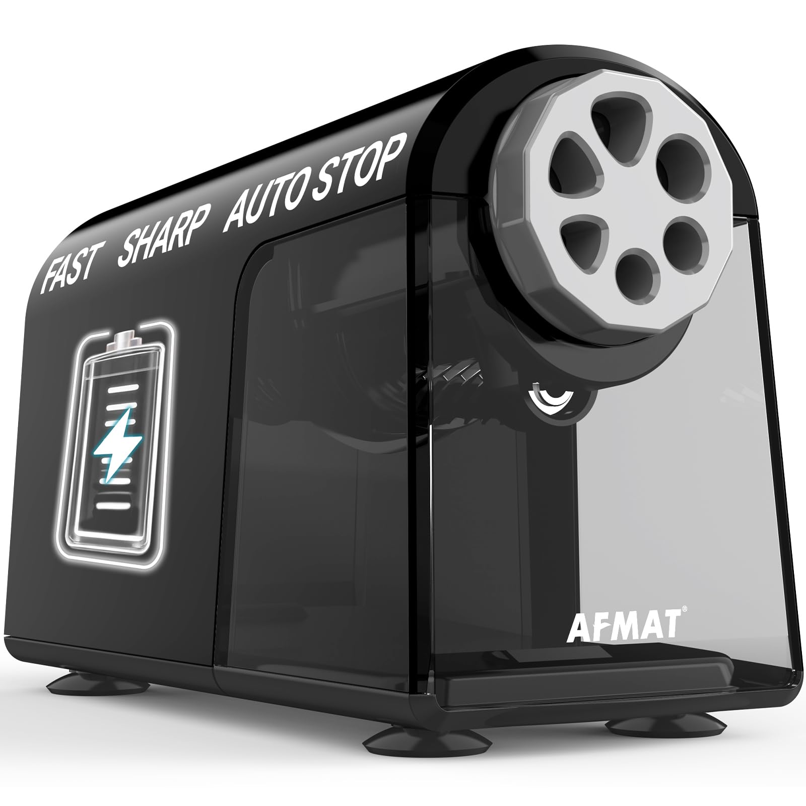 AFMAT 6-Hole Electric Pencil Sharpener Heavy Duty, Fast Sharpen, Auto Stop & Save Pencils, 10000 Sharpening Times, Rechargeable Classroom Pencil Sharpener for 6-11mm No.2/Large/Colored Pencils, Black