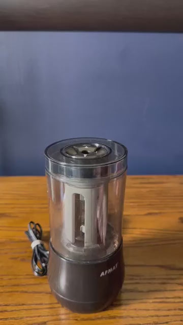 Afmat electric pencil sharpener can be recharged and reused, and can be charged and move around. The large pencil sharpener can sharpen 300 times per charge due to the built-in 2000mAh lithium battery.