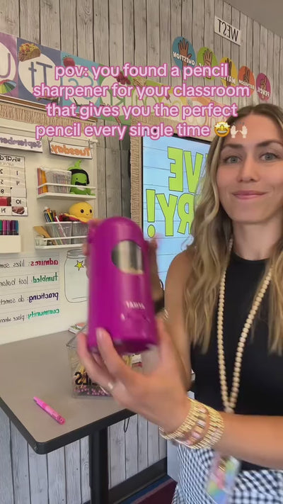 - FULLY AUTOMATIC PENCIL SHARPENER: Simply drop a pencil in and this electric pencil sharpener will auto feed in and auto eject the pencil once pointy. This is the best pick of the back-to-school style sharpeners. This robot pencil sharpener is really a no-touch, which ensures kid' hands’ safety and avoids hand pain.