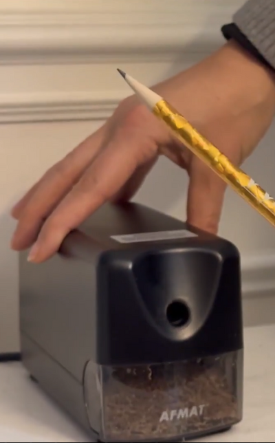 - Insert a pencil (diameter within 11mm) and push it with a little pressure, it starts to work automatically.
