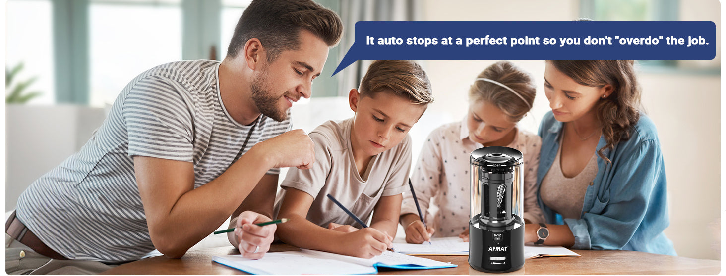 - HEAVY DUTY PENCIL SHARPENER WITH 2 SHARPNESS SETTINGS: With strong and durable helical blade, this AFMAT pencil sharpener can sharpen over 8000 times. With modern design, the helical blade can be replaced easily! This electric sharpener has 2 sharpness settings: blunt and sharp. If you are an artist, you may need a really sharp point. If you buy this sharpener for your kids, you can adjust the setting to a blunt point.