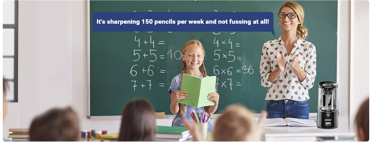 - ELECTRIC PENCIL SHARPENER PLUG IN: This electric pencil sharpener comes with a 12V AC Adapter, which is easy to use. The voltage of the adapter ranges from 100V to 240V, which means this AFMAT pencil sharpener can be used worldwidely.