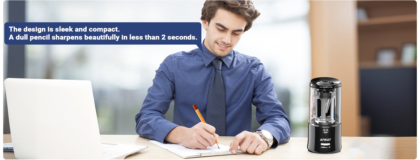 - FAST PENCIL SHARPENER EVER: With strong motor, this AFMAT electric pencil sharpener can sharpen a new pencil in 5 seconds, and a used pencil in 3 seconds. If you are fed up with those pencil sharpeners which take forever to sharpen a pencil, add this colored pencil sharpener into cart. You can save a lot of time to do other work.