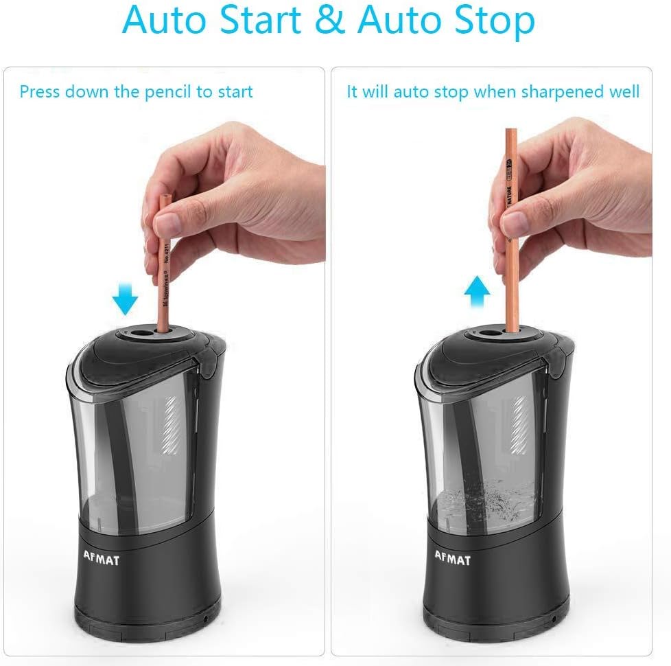 - AUTO STOP PENCIL SHARPENER: This art pencil sharpener will stop automatically at a perfect point and it will exclude broken lead automatically. To decrease the possibility of lead breakage, the sharpening speed is slower than before. Please take the pencil out slowly to avoid lead breakage.